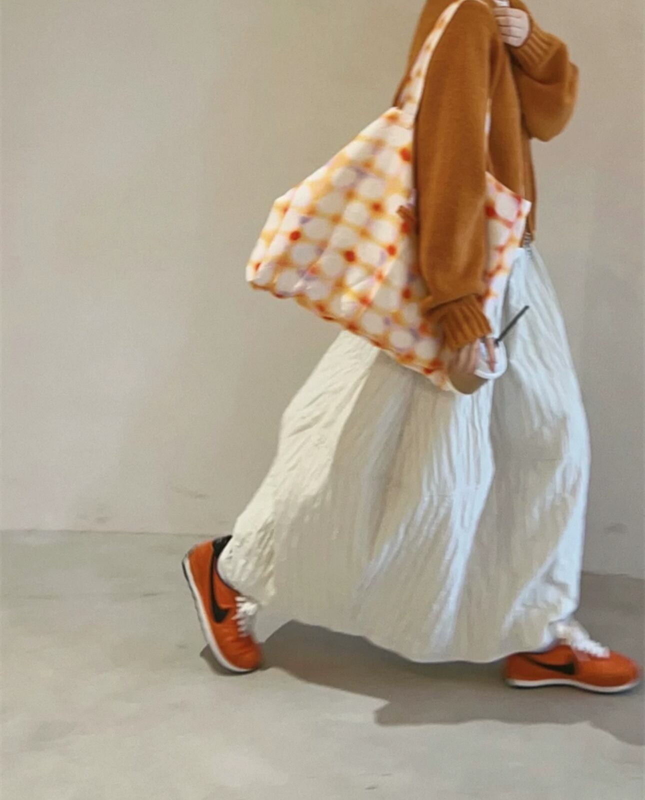 シンプルなニットやスウェットと合わせるだけで